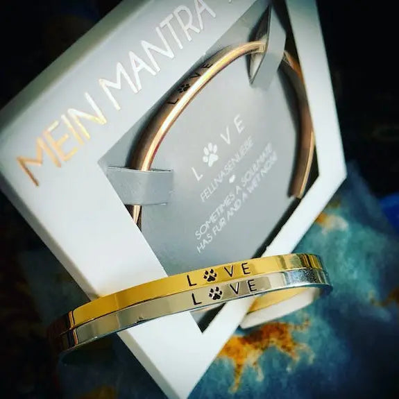 Armreif mit Gravur L O V E (mit einer Pfote anstelle des „O“).