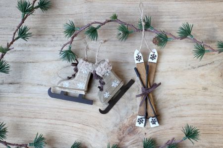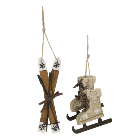 Chic Antique Holz Anhänger Schlittshuhe / Ski 9 cm