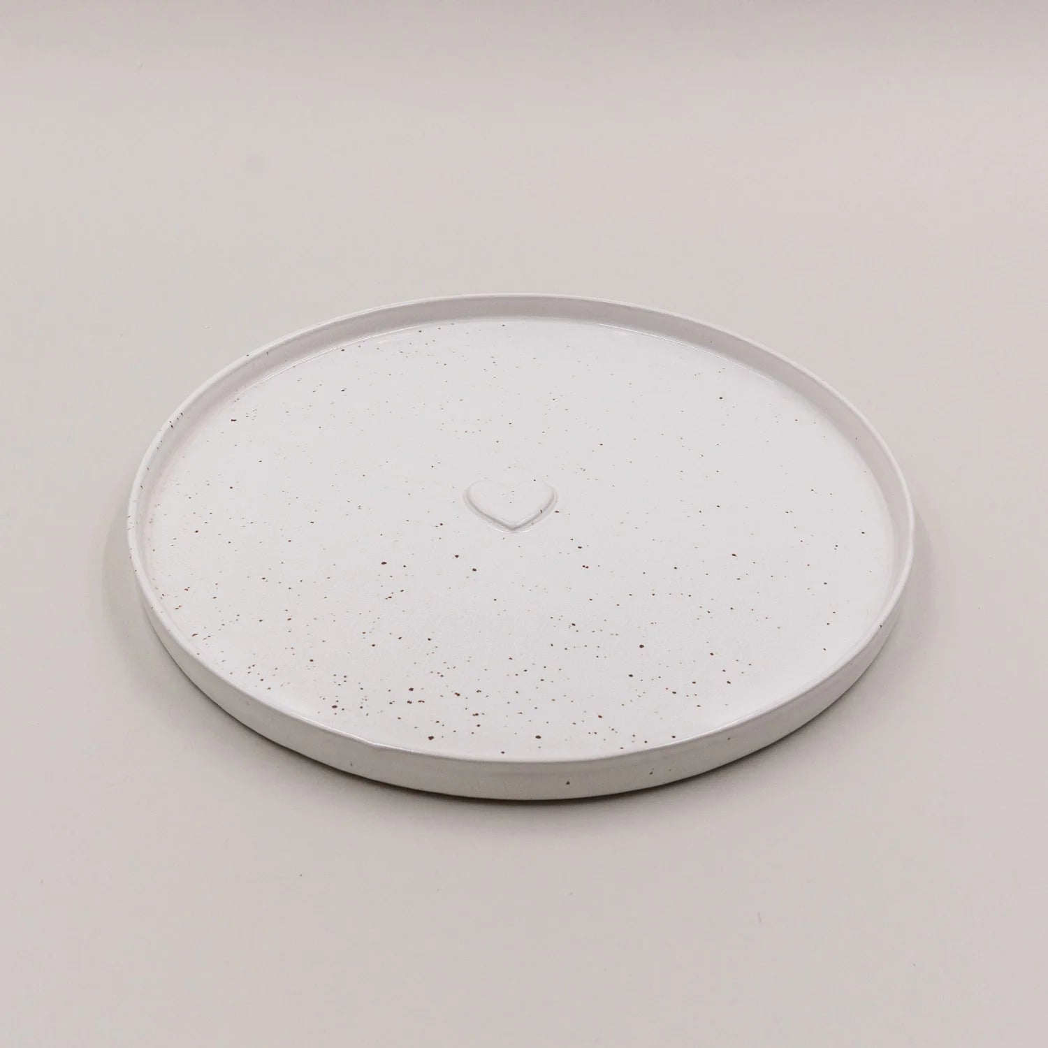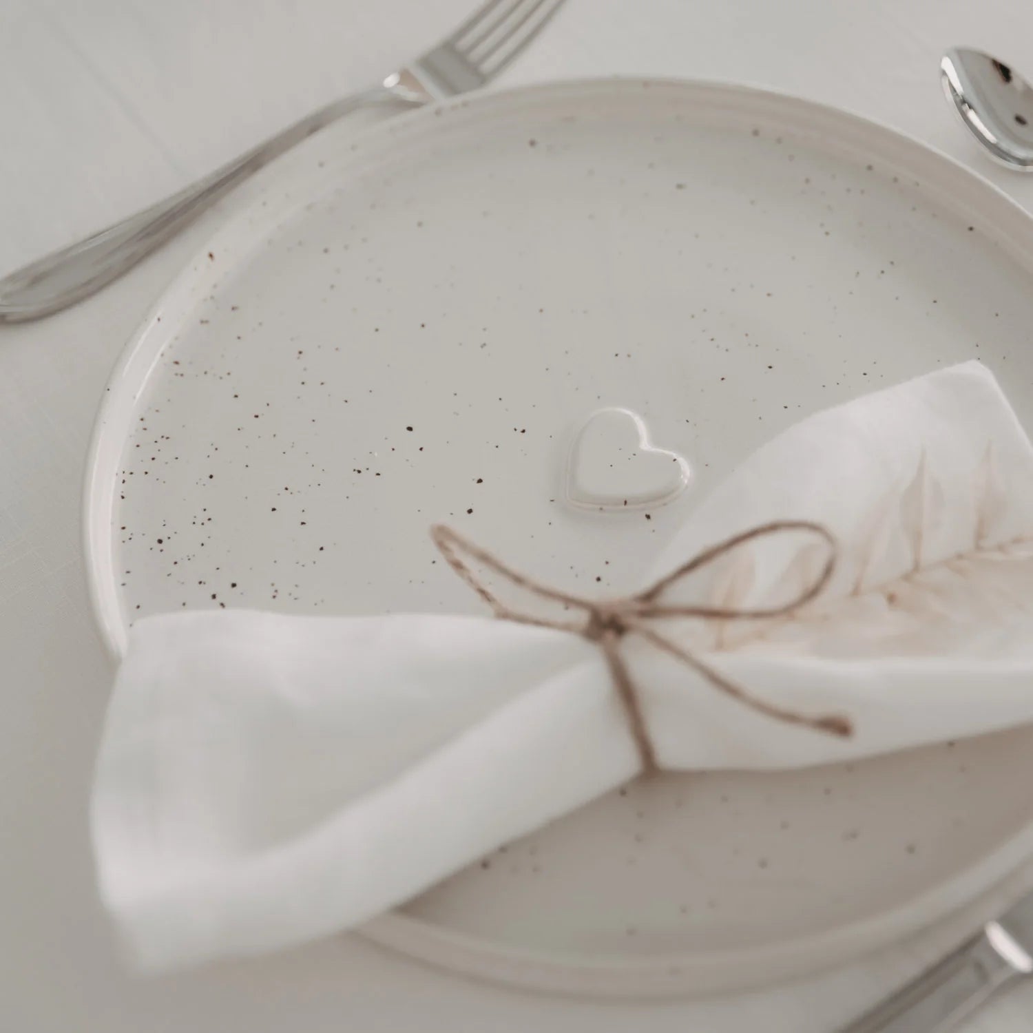 Der Calma Speiseteller Herz bringt nicht nur deine Lieblingsgerichte stilvoll auf den Tisch, sondern auch ein liebevolles Detail – ein erhabenes Herz in der Mitte des Tellers. Dieses dezente, aber wirkungsvolle Design-Element vereint verspielte Leichtigkeit mit zeitloser Schlichtheit und macht den Teller zu einem echten Highlight auf jedem gedeckten Tisch. Aber auch als Tablett kannst du diesen Teller perfekt nutzen um deine liebsten Wohnaccessoires zu präsentieren.
