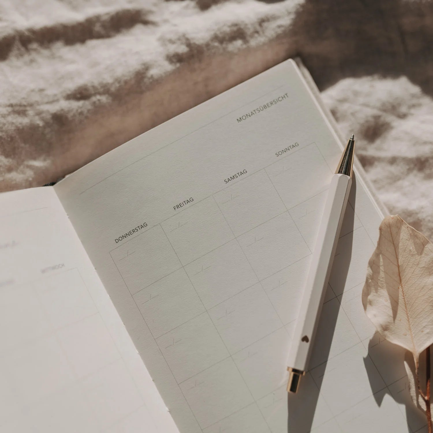 Mit seinem schlichten, hochwertigen Design wird „Neues Glück“ schnell zu einem täglichen Lieblingsstück. Die klaren, durchdachten Layouts helfen dir, deinen Alltag zu strukturieren und gleichzeitig Achtsamkeit und Kreativität einzuladen.