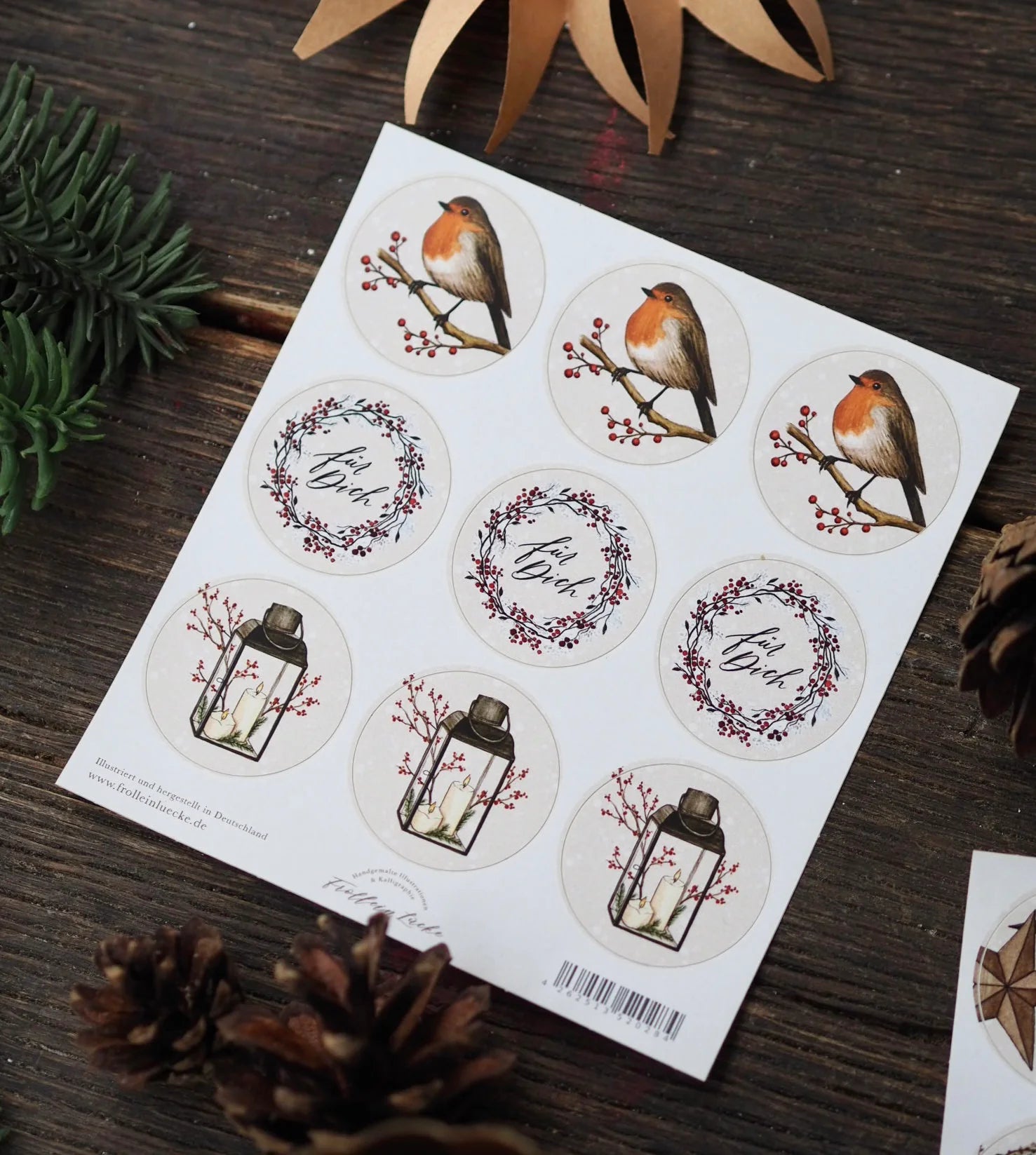 Frollein Lücke Sticker Vogel, Kranz, Laterne