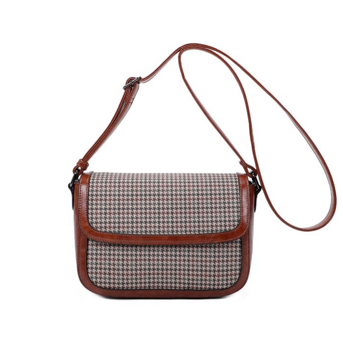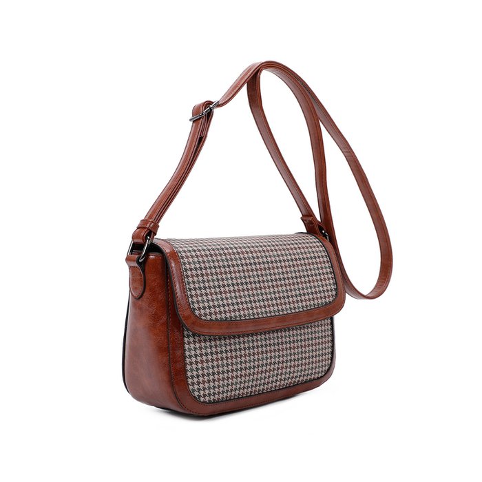 Elegante Handtasche mit der perfekten Größe, nicht zu groß und nicht zu klein. Durch die raffinierte Aufteilung im Inneren hast du immer alles gut sortiert und griffbereit. Der lange Schultergurt ermöglicht dir das Tagen crossover oder lässig über die Schulter. Das Material im Vintage Look und der Stoffeinsatz mit Hahnentritt Muster passt perfekt zum Old Money Style.
