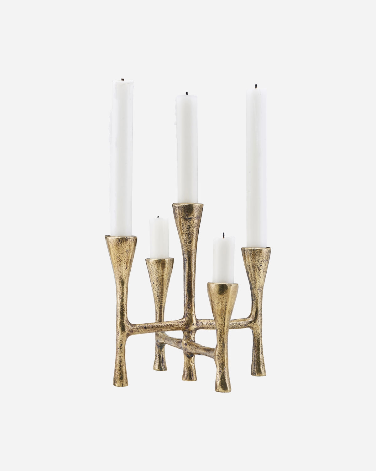 Kerzen sind gleichbedeutend mit Gemütlichkeit, vor allem abends. Mit diesem Kerzenständer von House Doctor kannst du dein Heim erleuchten und die richtige Stimmung für einen gemütlichen, festlichen Abend mit Freunden schaffen. Der Kerzenständer trägt den Namen TRISTY und ist aus Aluminium mit einem Messing-Finish gefertigt.