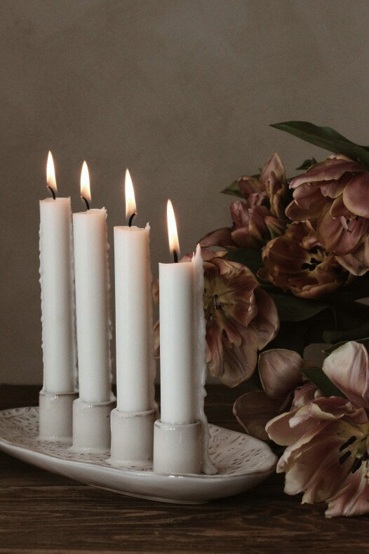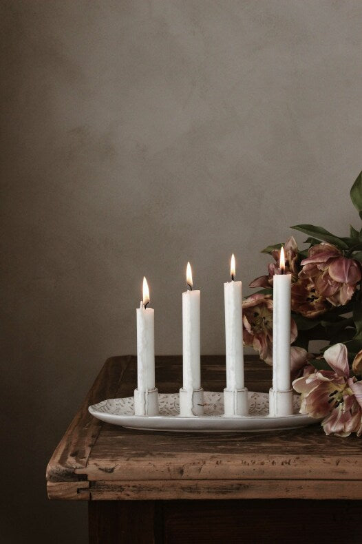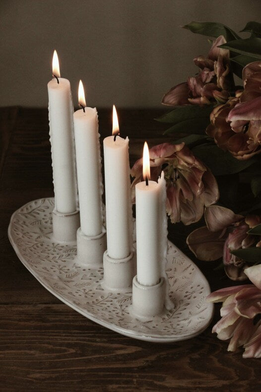Dieses Jahr gibt es zur beliebten WINTERHEART Serie von Majas Cottage eine wundervolle Kerzenschale mit 4 Kerzenhaltern. Gefertigt aus feinem Steingut mit heller, reaktiver Glasur und einem Muster aus Sternen, Herzen, Schneeflocken, Zweigen und Ästen. Du kannst sie als zauberhaftes Center Piece für deine Tischdeko verwenden oder auch als Alternative zum klassischen Adventskranz auf deinem Sideboard.