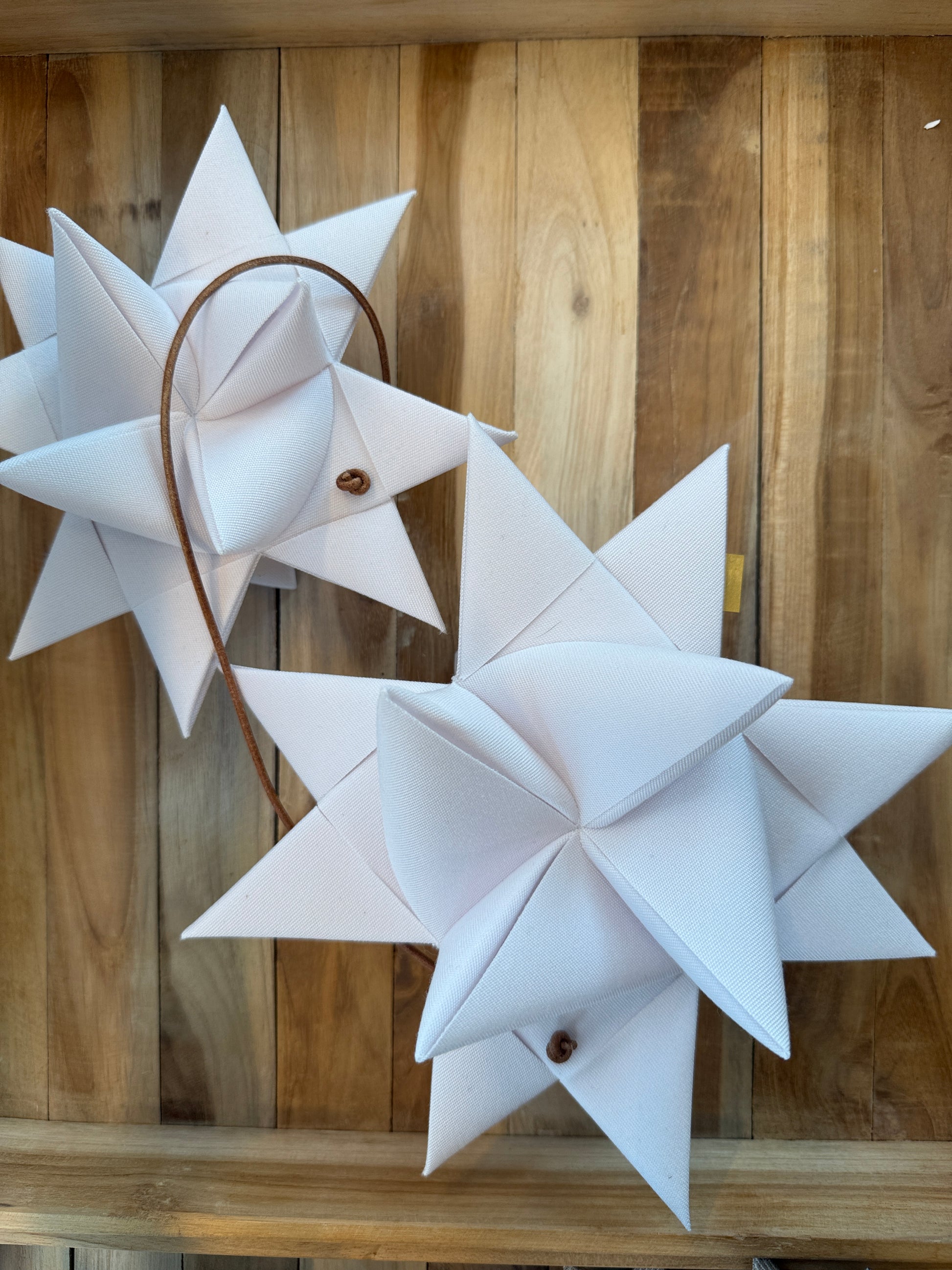 Das Canvas Fröbelstern Set besteht aus 2 Sternen, die aus Baumwolle mit einer einseitigen wasserabweisenden Beschichtung in Handarbeit gefertigt wurden. Die weiche stoffähnliche Textur verleiht ihr eine warme und weiche Optik, perfekt für Weihnachtsdekorationen im Innenbereich zum Beispiel an einem Kranz, deiner Balkon- oder Terrassentür, Haustüre oder in einem großen Fenster. Aber auch als Weihnachtsdekoration an einem Schrank oder der Wand wird diese Sternengirlande alle Blicke auf sich ziehen.