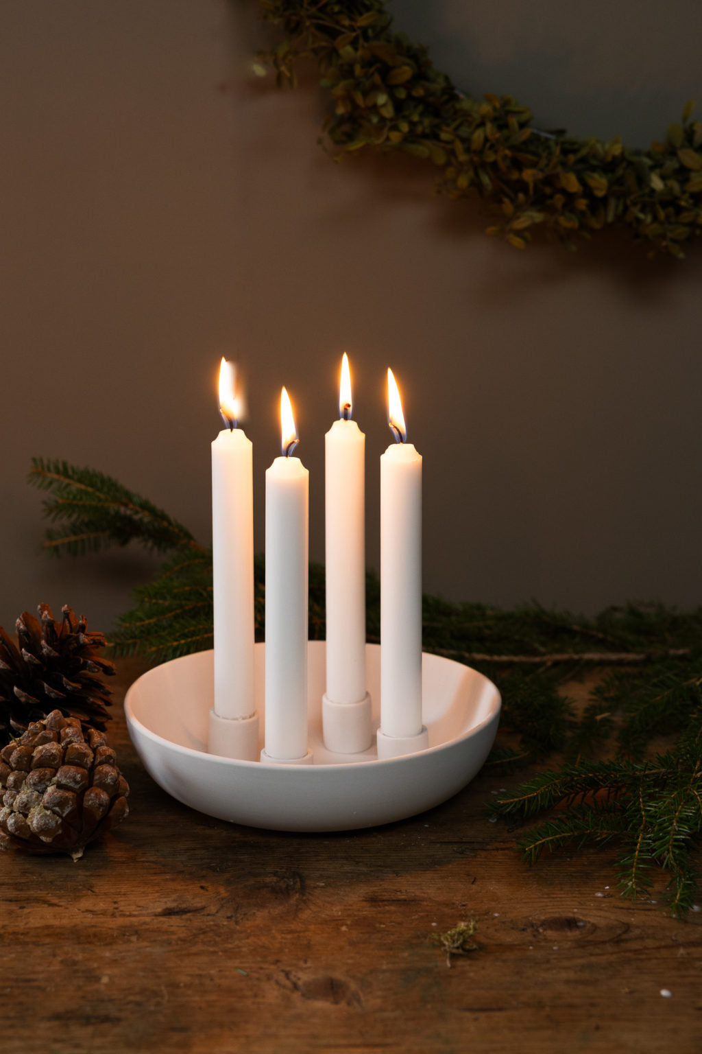Die Granholmen-Kerzenschale mit 4 eingearbeiteten Kerzenhaltern zum Advent. Die matt weiße Keramik ist unbehandelt und ein Markenzeichen von Storefactory. Es ist natürlich, dass bei handgefertigter Keramik kleine Punkte oder Grübchen in der Keramik entstehen können. Jedes Stück ist ein Unikat. Du kannst diese Kerzenschale mit Zweigen, Nüssen, kleinen Weihnachtskugeln und kleinen Keramikfiguren dekorieren. So sorgt diese Kerzenschale für behagliche Stimmung in deinem weihnachtlichen Zuhause. Bei uns findest du natürlich die passende, ergänzende Deko, wie zum Beispiel Keramikfiguren.