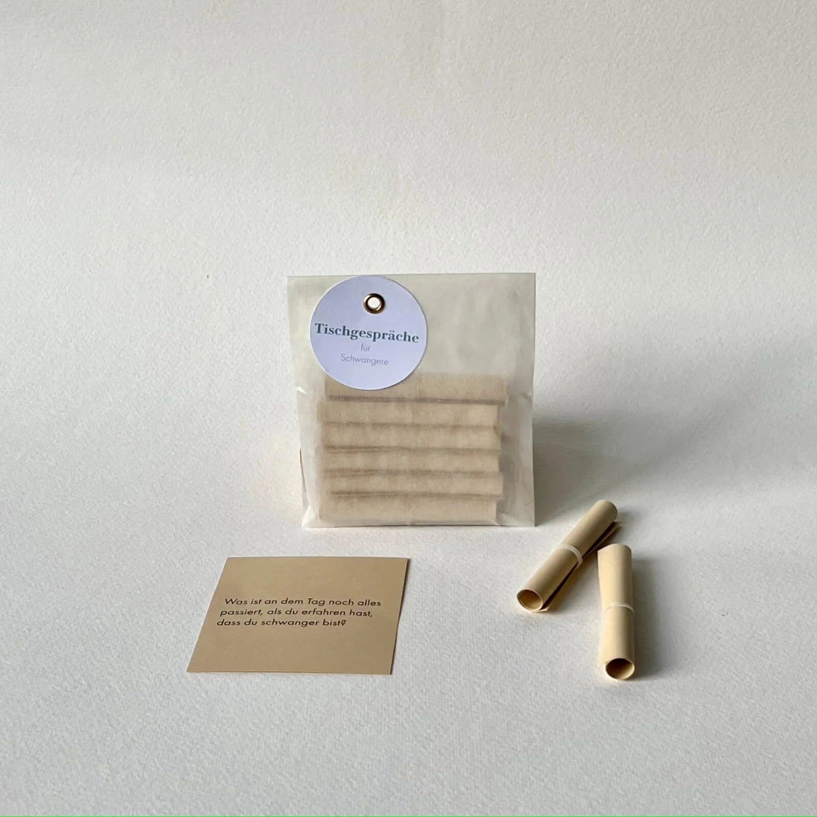 Eine Schwangerschaft wird immer anders erlebt. Auf jeden Fall ist es eine Zeit voller Fragen und Neuigkeiten. Mit den Fragen dieser Tischgespräche sollt ihr positiv eingestimmt werden und voller Hoffnung dem Abenteuer Kind entgegen gehen.