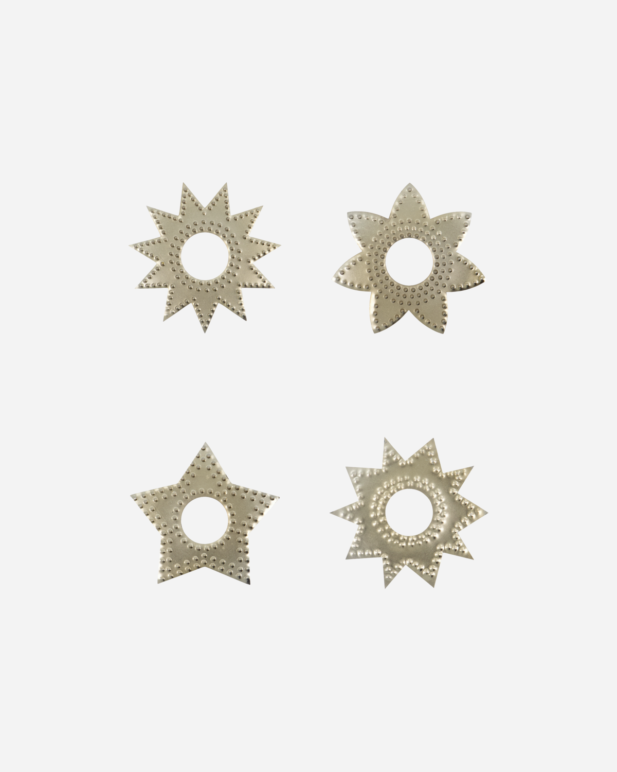 Verleihe deinen Kerzenhaltern mit diesen handgefertigten Kerzenringen in antikem Champagner-Silber-Finish einen Hauch von Eleganz und Gemütlichkeit. Es gibt sie in vier verschiedene Designs, die mit wunderschönen gestanzten Mustern verziert sind. Außderdem schützt dieser Wachsfänger deine Kerzenhalter vor Verschmutzungen durch auslaufenden, flüssigen Wachs.